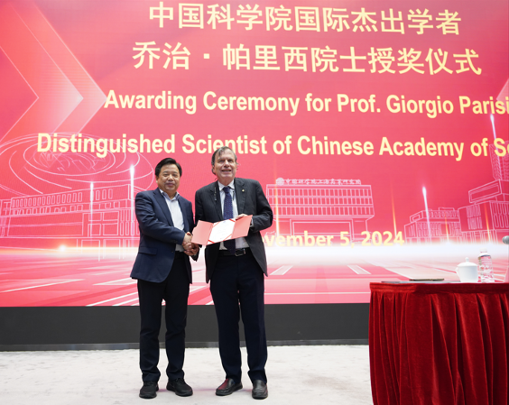 黄政仁在致辞中代表高研院欢迎帕里西院士拜访。他表示,中国科研实验室国际杰出学者计划旨在鼓励科技领域取得卓越成就的外国杰出专家访华召开学术研讨活动,期待帕里西院士带来宝贵的学术财富和启示灵感,进一步有助于EVO视讯官网交叉科学领域的科研创新开展。随后,黄政仁为帕里西院士颁发中国科研实验室国际杰出学者证书。